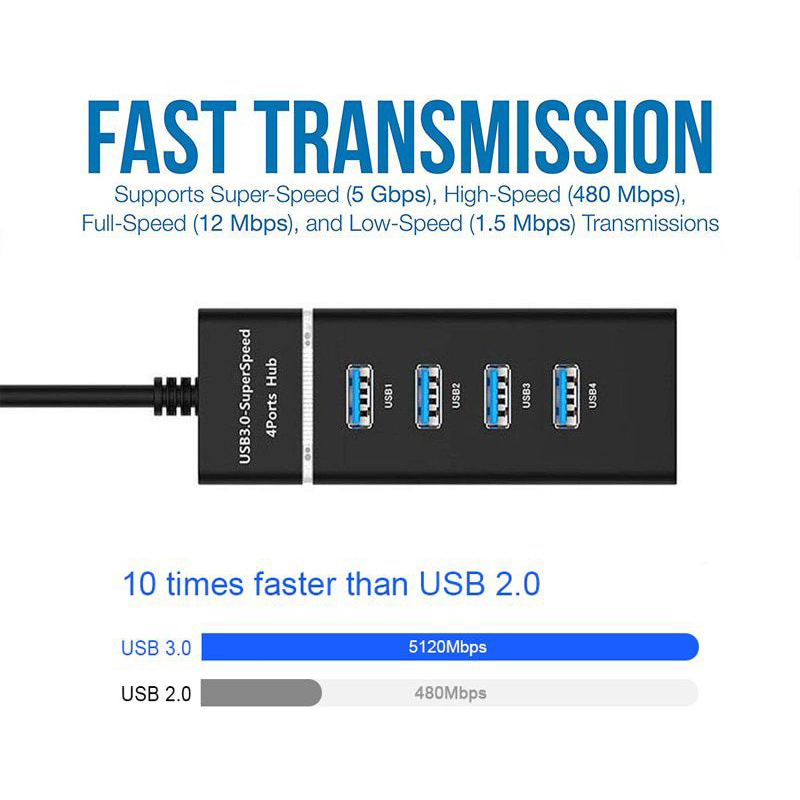4 Port USB 3.0 Hub Splitter High Speed Multiport Slim USB Hub Adapter Extender Extension Connector