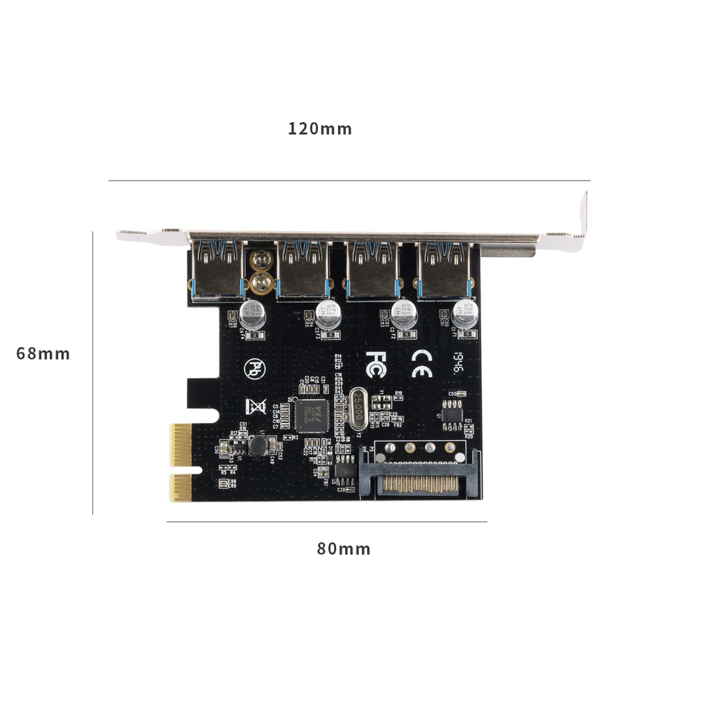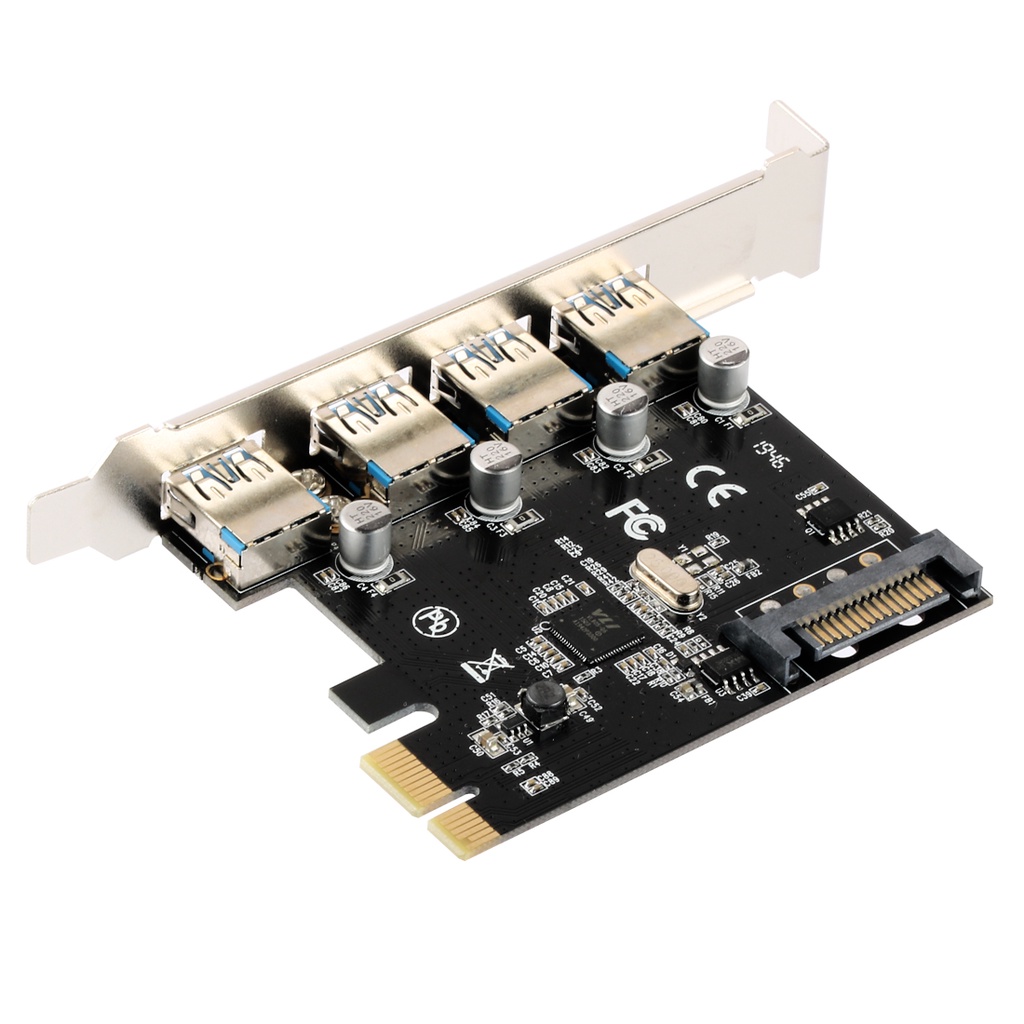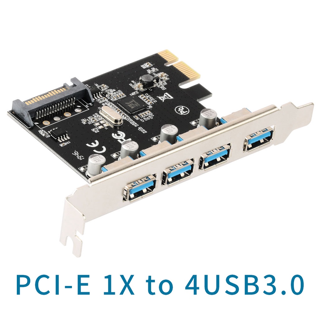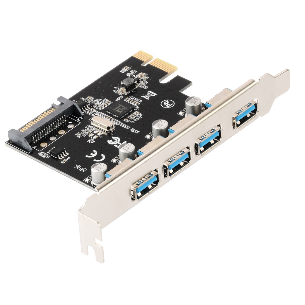 4 Port USB 3.0 PCI-e Expansion Card PCI Express PCIe USB 3.0 Hub Adapter 5Gbps Riser Controller Extender with 4Pin / SATA Power