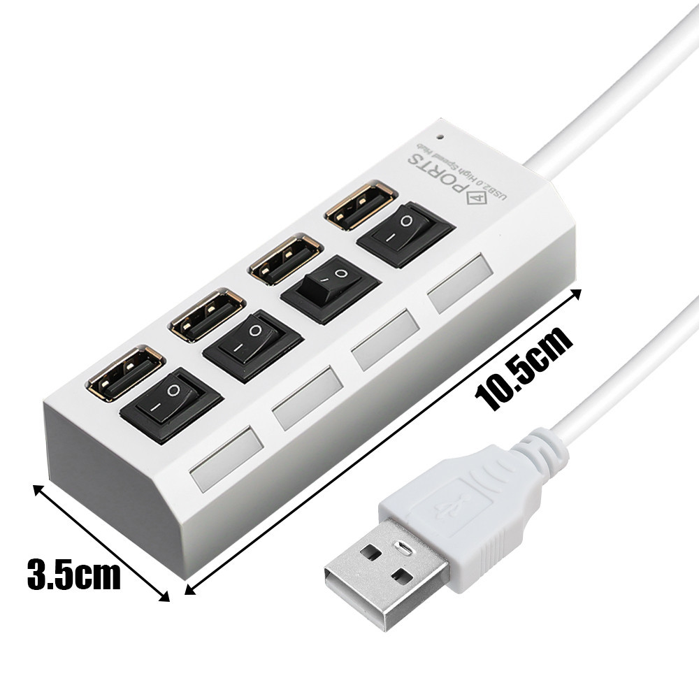 4 Ports Fast Data Transfer Hub - USB 2.0 Data Hub - Adapter for Laptop PC Keyboard Mouse - Computer Accessories - With Individual LED Power Switches