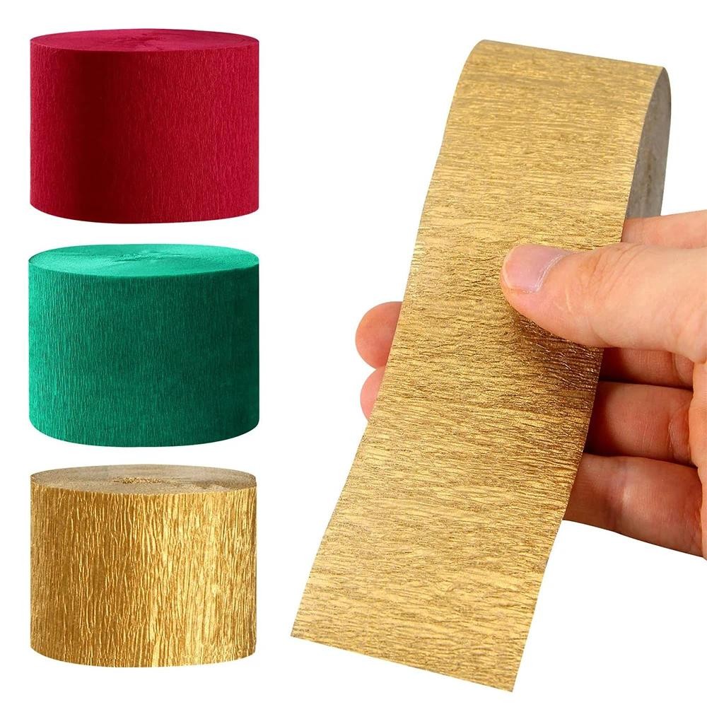 4 Rolls Christmas Crepe Paper Streamers Red Green Gold Crepe Paper Rolls DIY Christmas New Year Room Wall Decoration Supplies