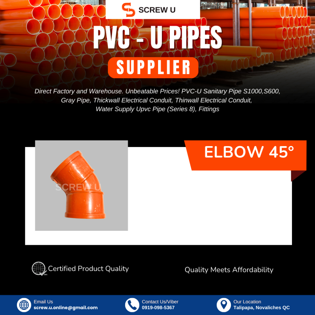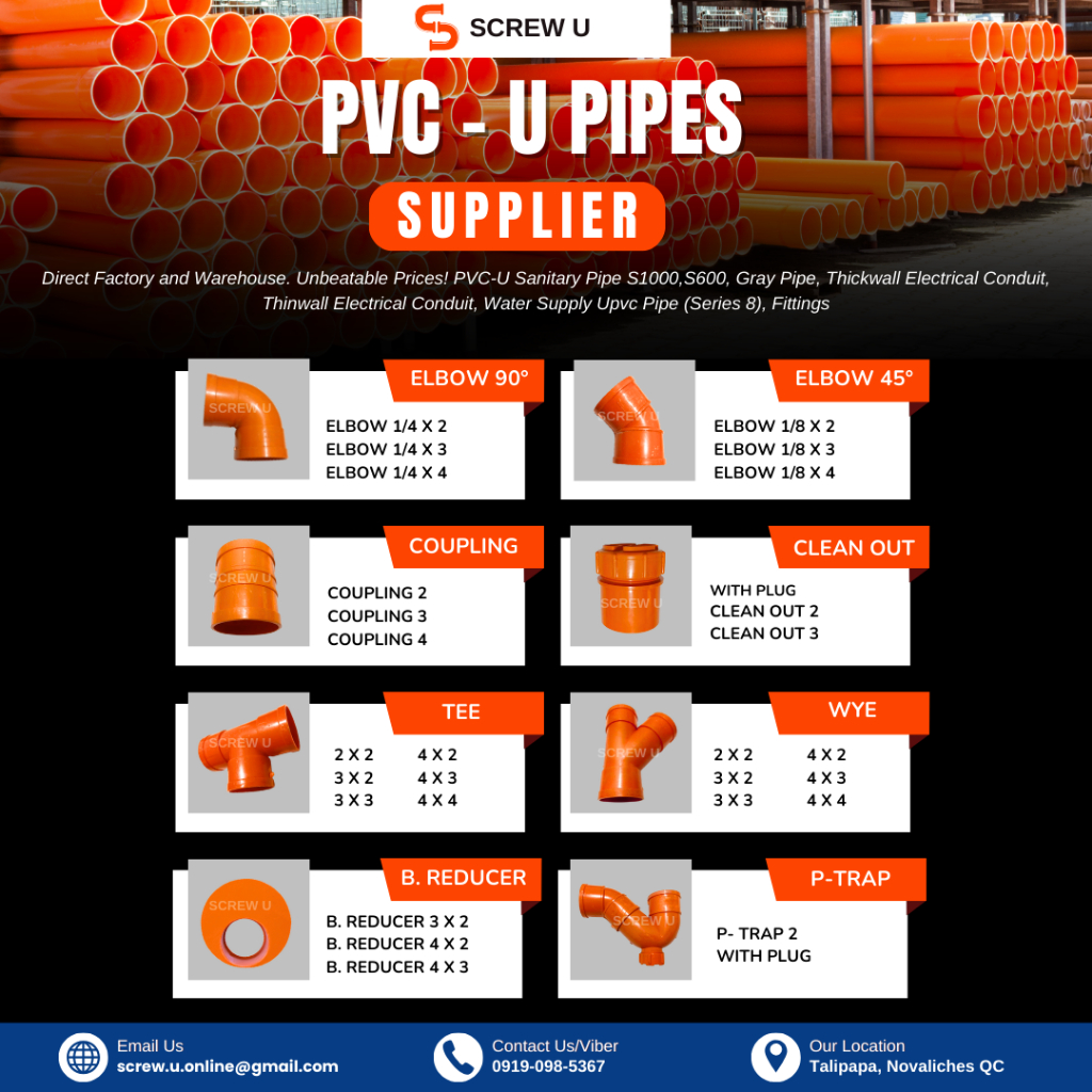 4" Sanitary Pipe PVC Fittings Orange Pipe Elbow, Coupling, Clean out, Tee, Wye, Bushing Reducer