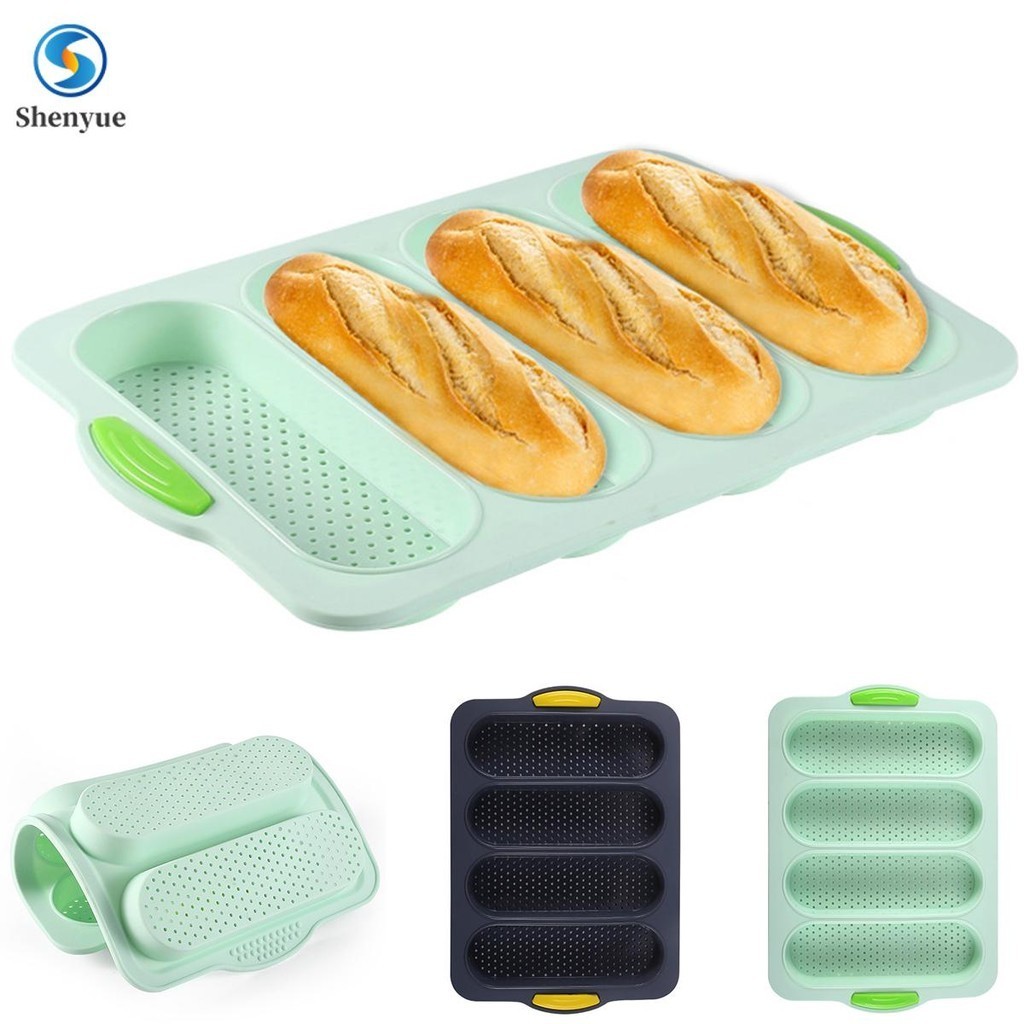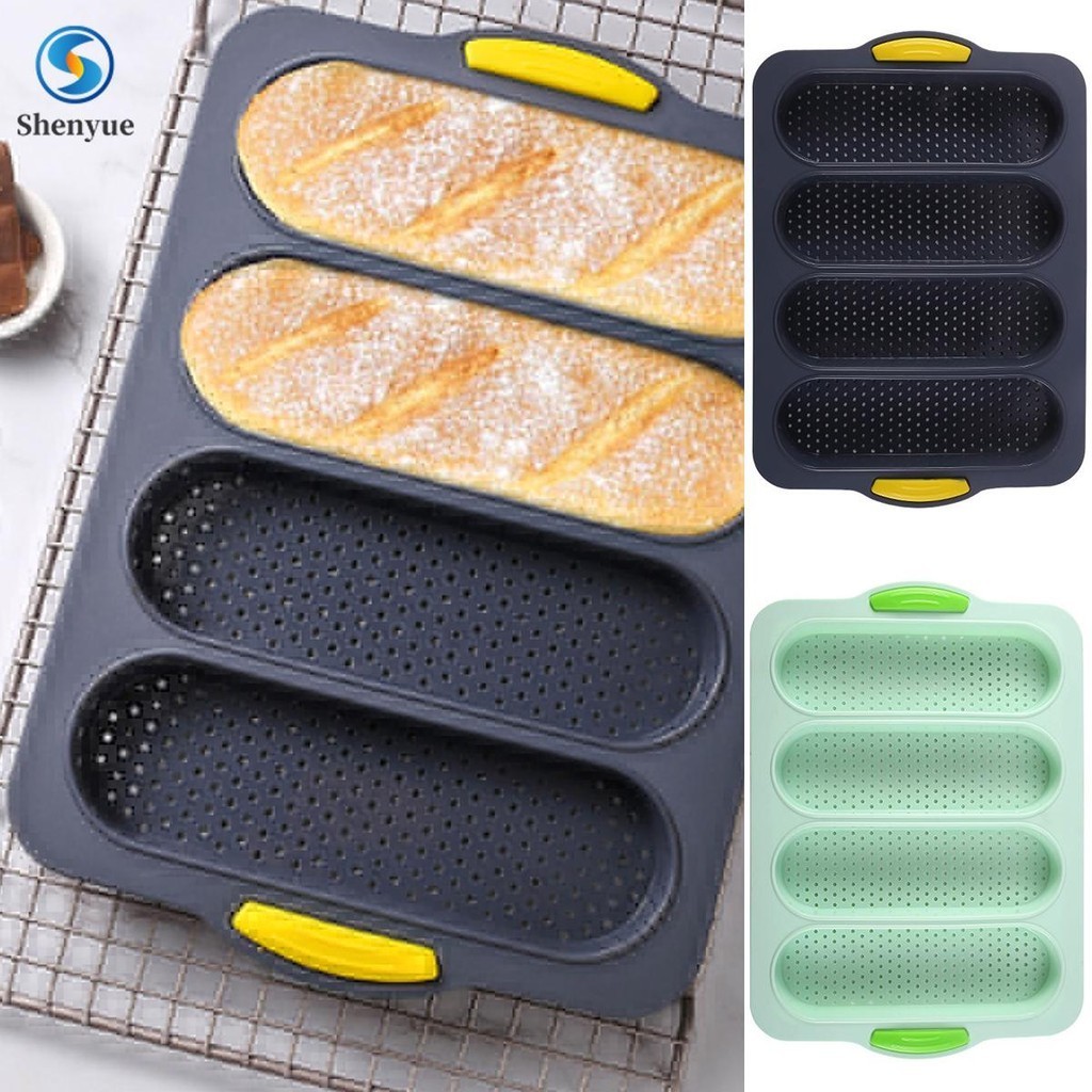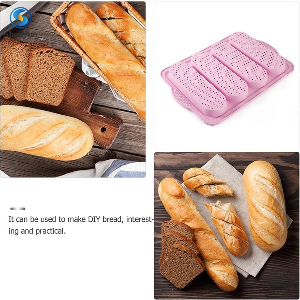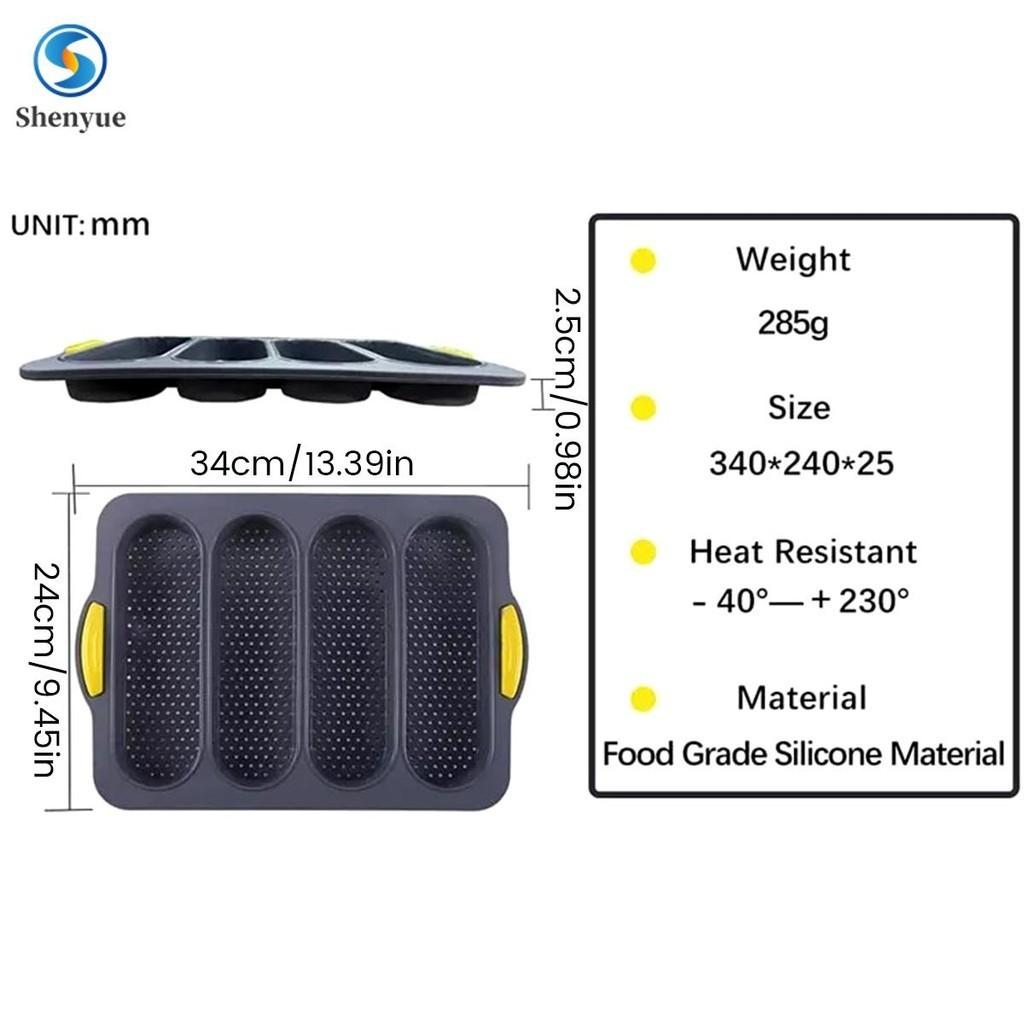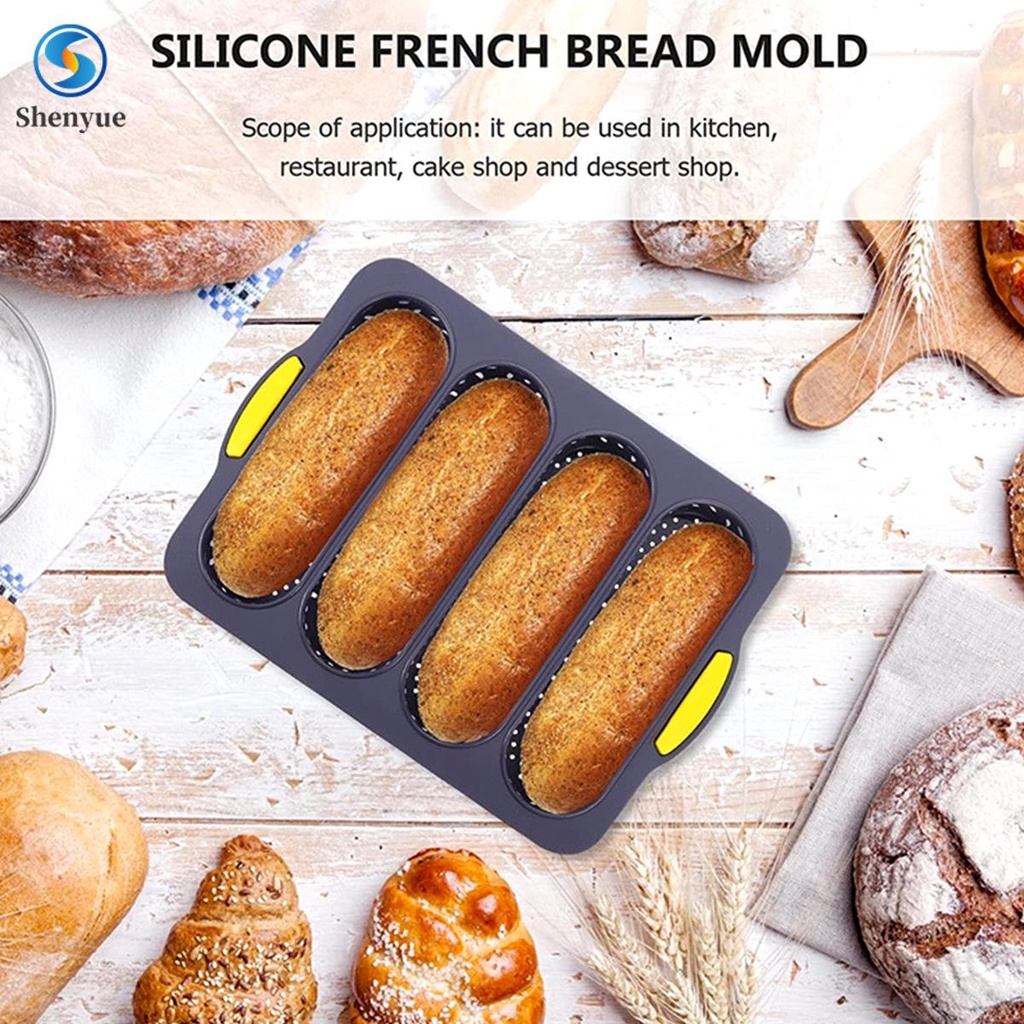 4 Slot Silicone Baguette Pan Silicone Baguette Mold Non-Stick French Bread Baking Pan for Baking SHOPSBC4134
