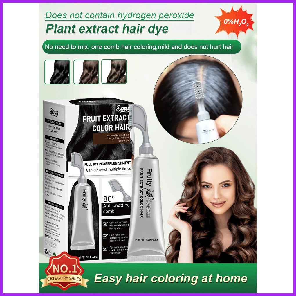 ☃ ▪ 【HOT Selling】【No hair damage/no additives】Fruit Extract Hair Dye/Black/Brown Hair Dye Cream at