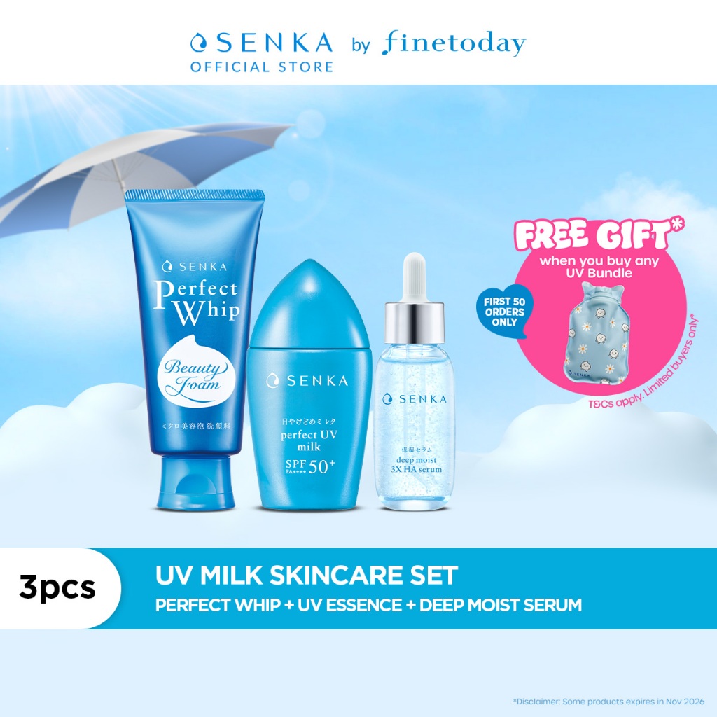 UV Milk Skincare Set: Perfect Whip (120g) + UV Milk + Deep Moist Serum