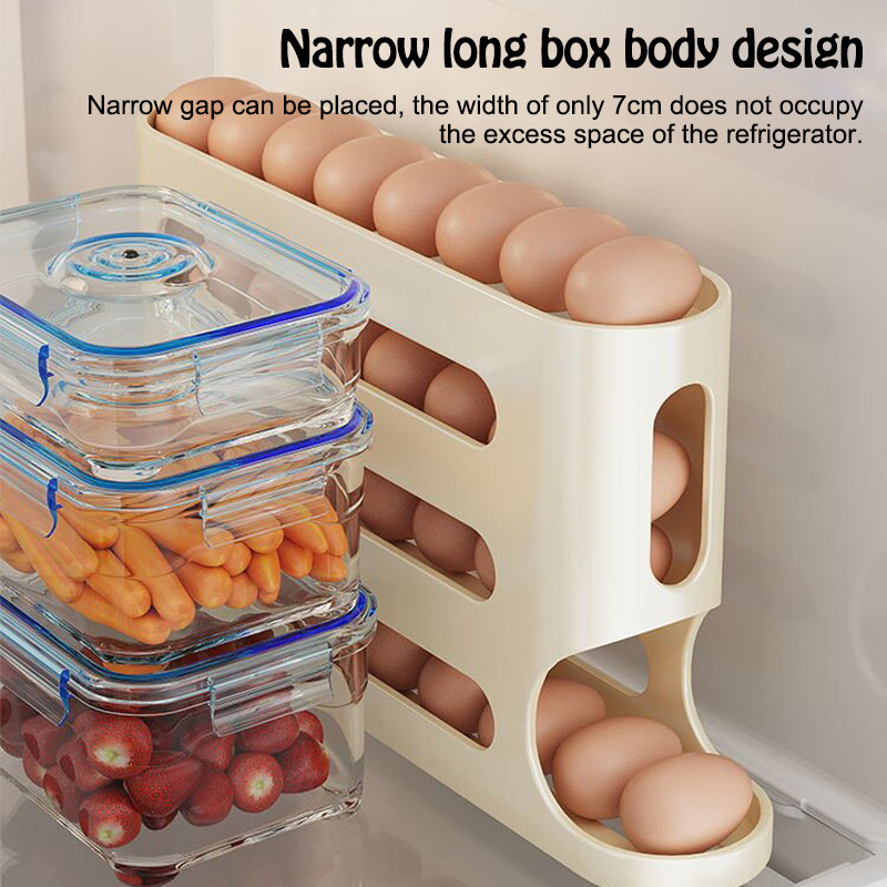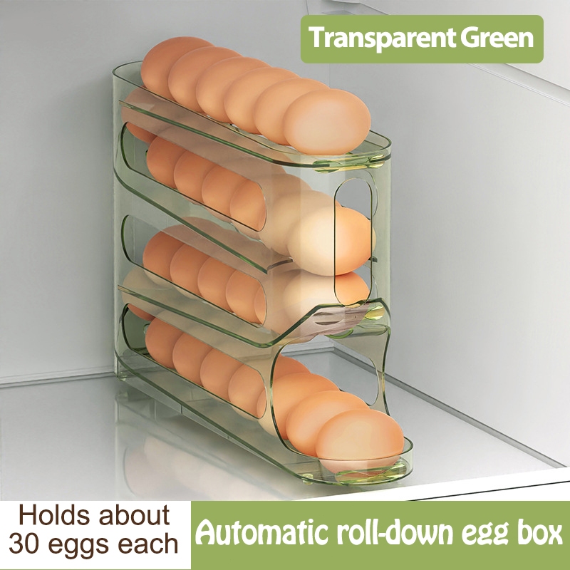 4 Tier Kitchen Egg Tray Refrigerator Egg Organizer Automatic Rolling Egg Storage Racks Dispenser