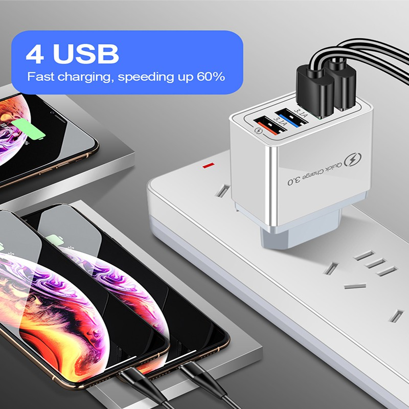 4 USB Fast Charger Multiple Ports Phone Charger Adapter US Plug