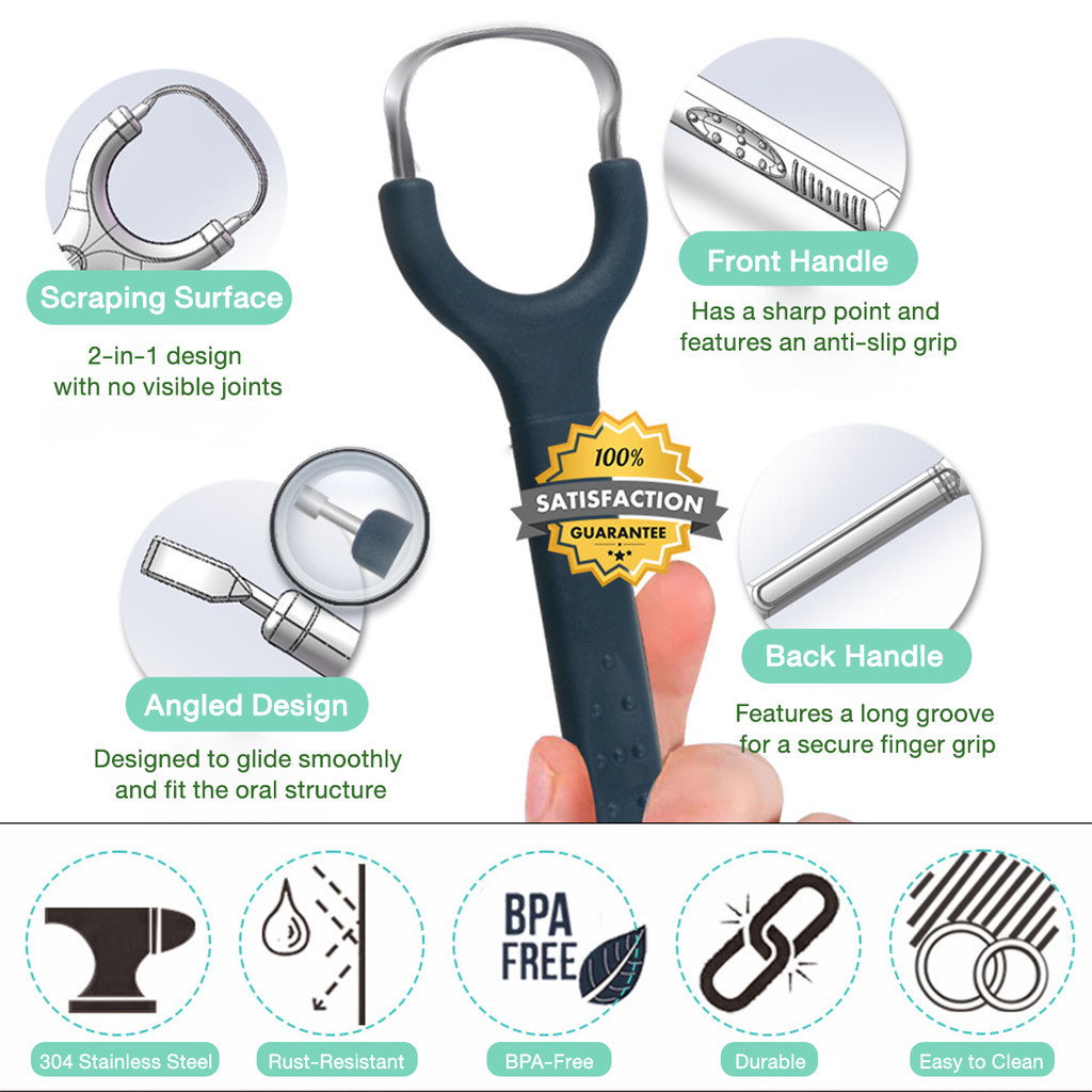 Tongue Cleaner Portable Stainless Steel Y-Shaped Tongue Scrapers Eliminate Bad Breath Oral Care