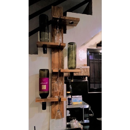 4-Wine v.2 Wall-mounted Wooden Hanging Wine Rack