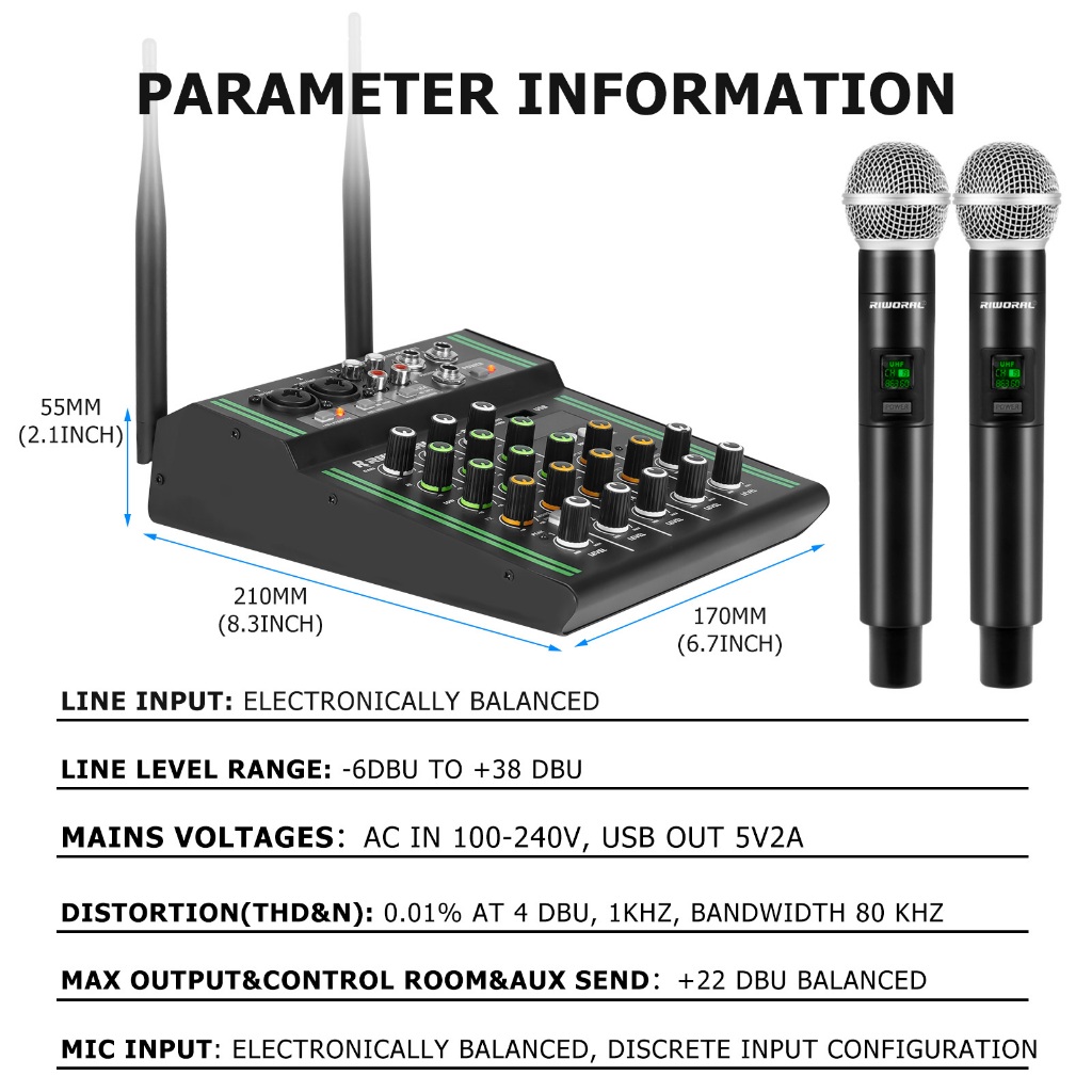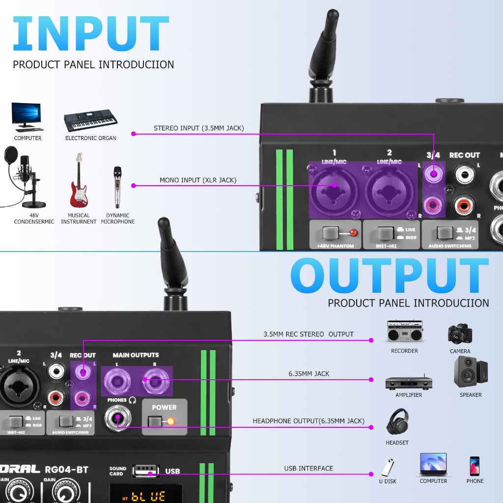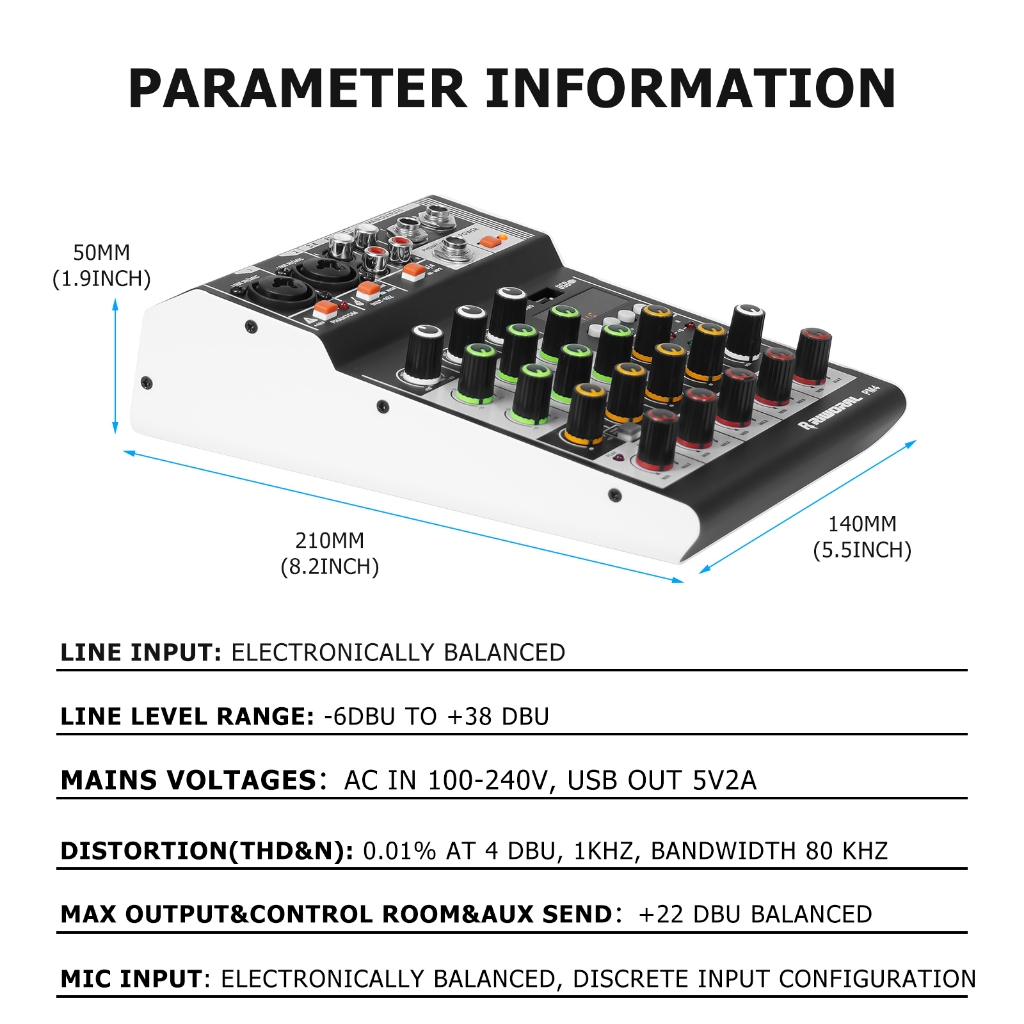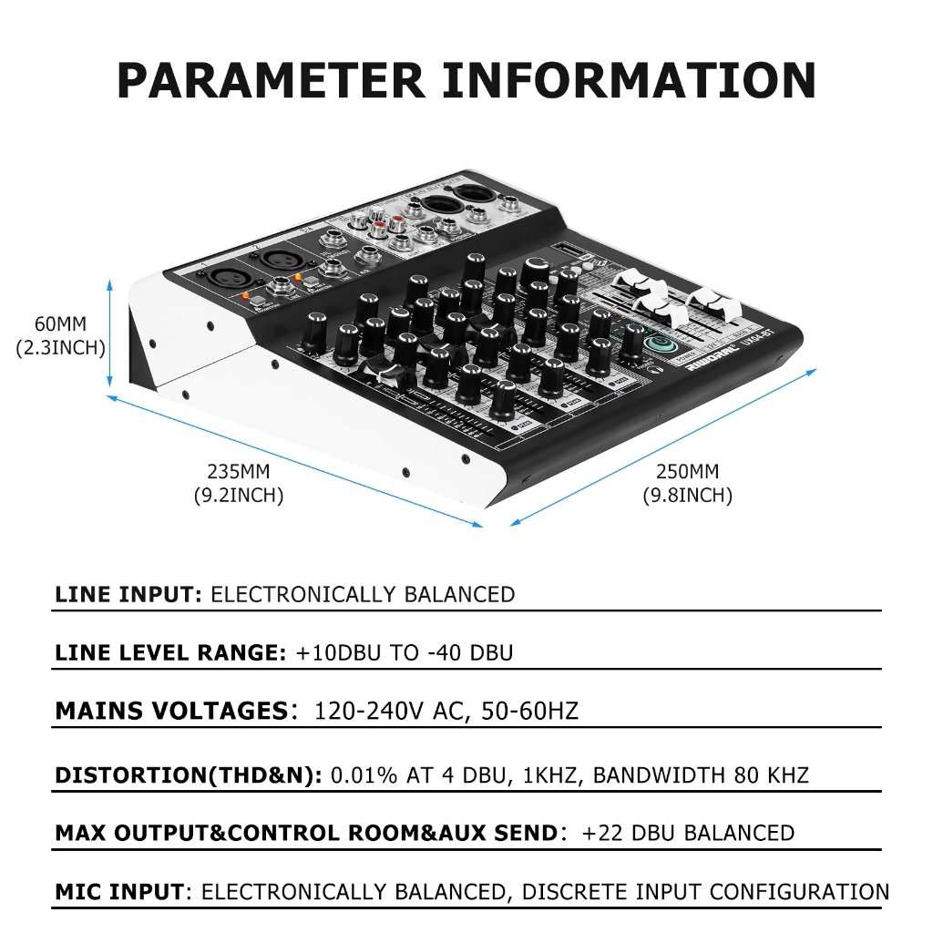 4 channel mixer wireless dual microphone 2 band equalizer bluetooth USB mixer audio +48v power