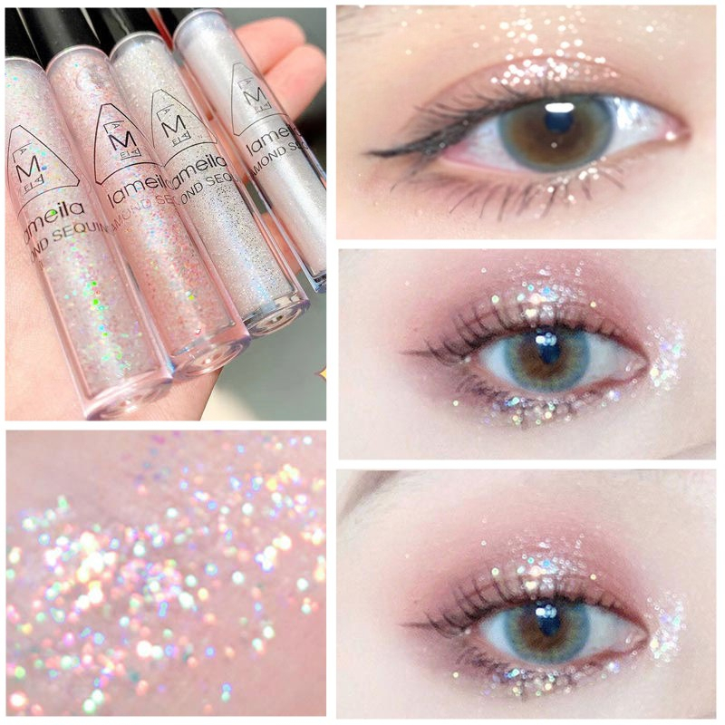 4 colors Liquid Shiny Pearlescent Smooth Eyeshadow, Bright White Monochrome Fluorescent Eyeshadow Eye Makeup