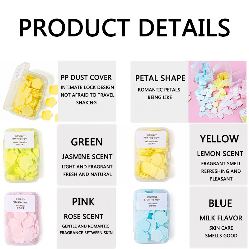 4 flavors Portable Soap Paper Travel Disposable Hand & Body Scented Slice Sheet Petal Rose
