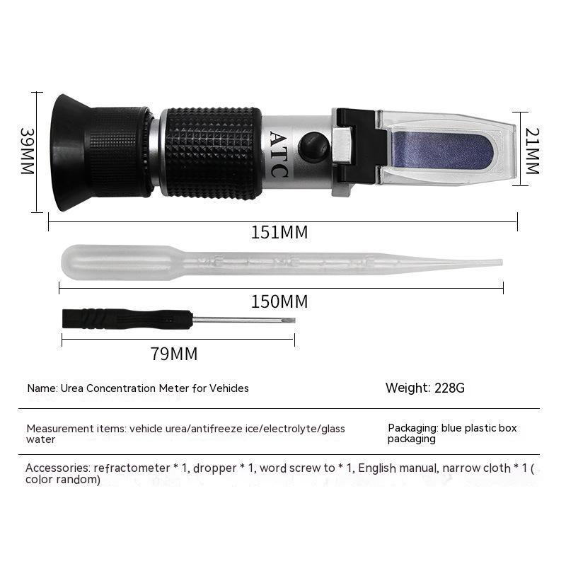 4-in-1 ATC Refractometer Ethylene Glycol, Propylene Glycol in antifreeze Fluids freezing point temperature and freezing point concentration, automotive and industrial battery Fluid