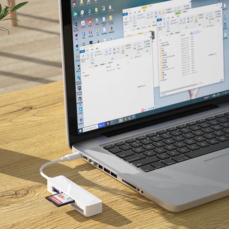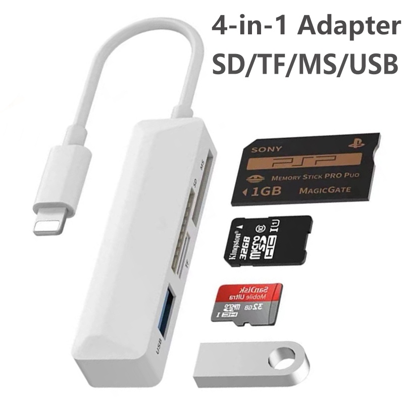 4-in-1 Card Reader USB OTG SD Micro SD TF MS Card Adapter for Type C/Lightning Laptop PC compatible iPhone 15 14 13pro max 12 11 xs xr/Android Smart Card Reader