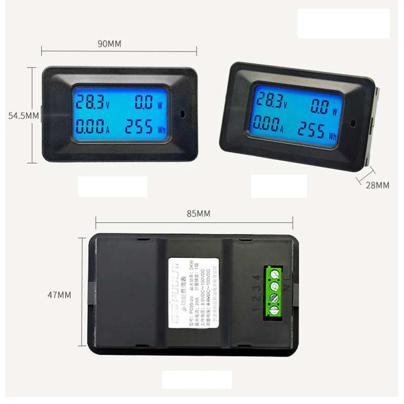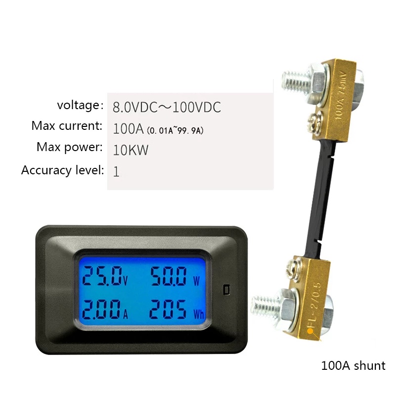 4 in 1 DC Digital LCD Meter Voltage Current Tester 8-100V 0-100A Power Monitor Panel car Gauge with 100A shunt