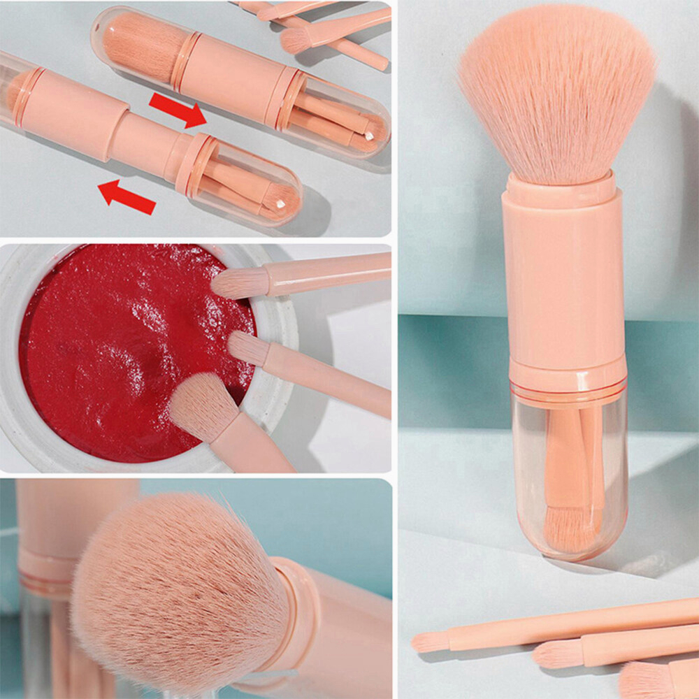 4 in 1 Portable Travel Mini Makeup Brush Set Blending Powder Eye Shadow Foundation Brush