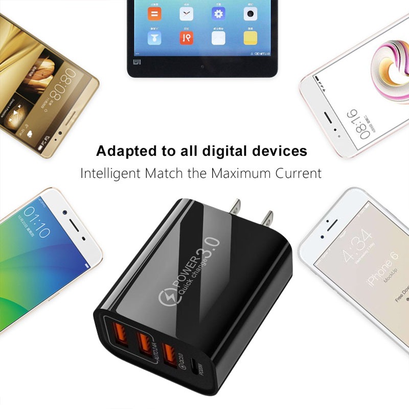 4 in 1 Power Adapter 3 USB Port with PD20W Type C Port Charging Adapter US Plug Phone Charger Access