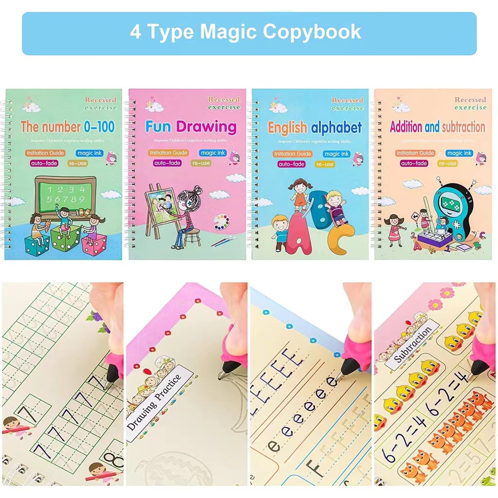 4 in 1 Practice Book Reusable Learning Copybook Writing Practice Magic Book Set Kid's school