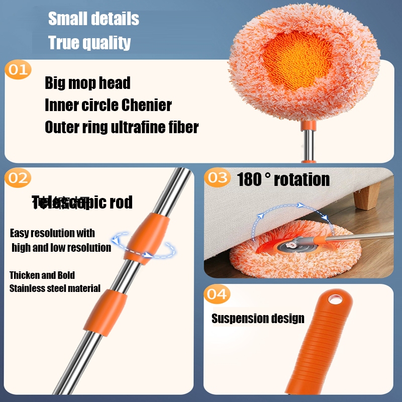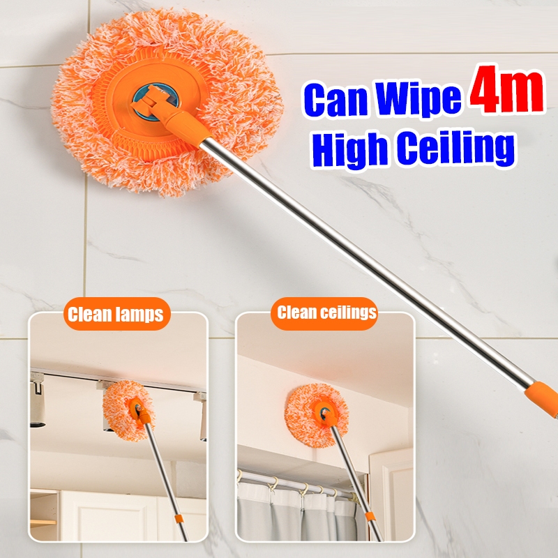【COD】4-in-1 Scalable Multifunctional Handheld Round Mop 360 Degree Easy Rotation Microfiber Mop Lazy Dust Removal Mop For Household Floor Wall Ceiling Car Cleaning Detachable Freely Assemble