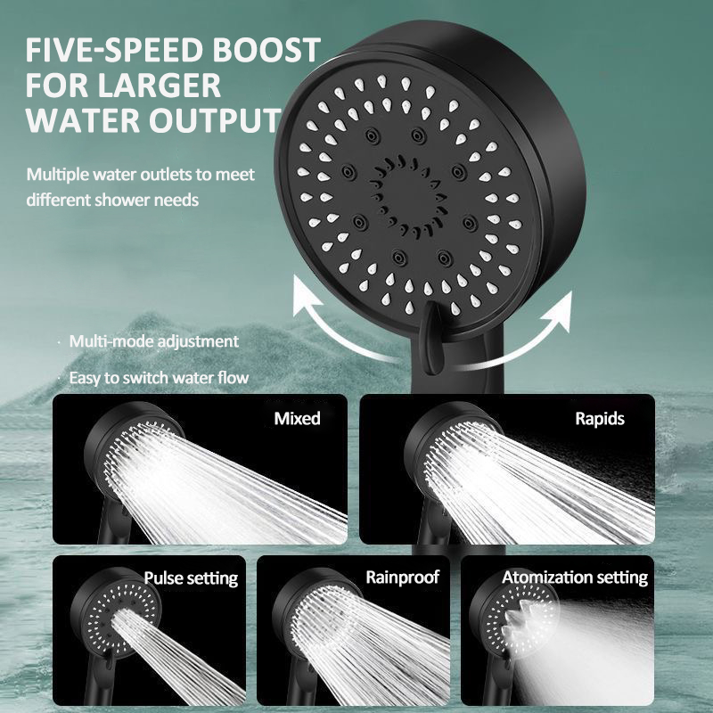 4 in 1 Shower Head Set 5-speed Booster Shower Bathroom Shower Set One-key Water Stop Handheld Showe Portable