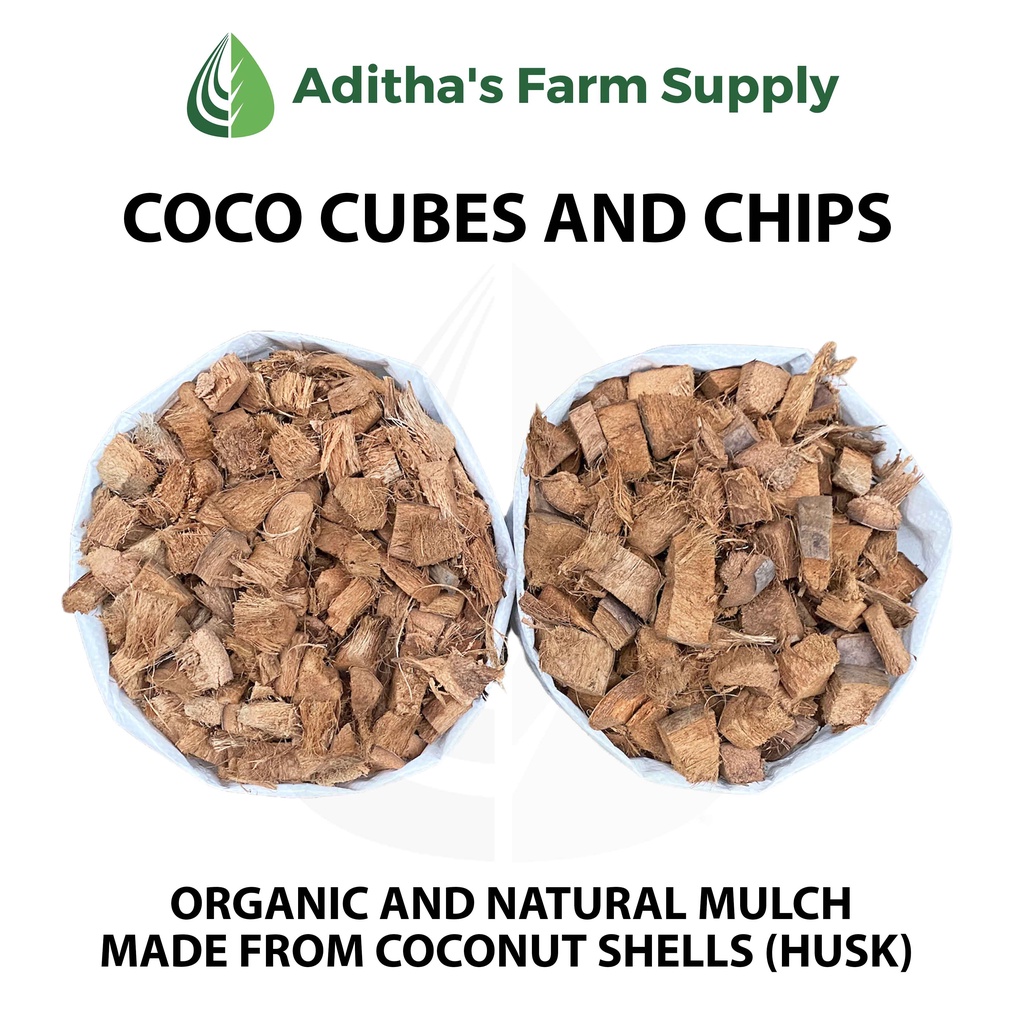 4 kg Sack Coco Cubes and Coco Chips (Organic and Natural Mulch Made From Coconut Husks) by Aditha's