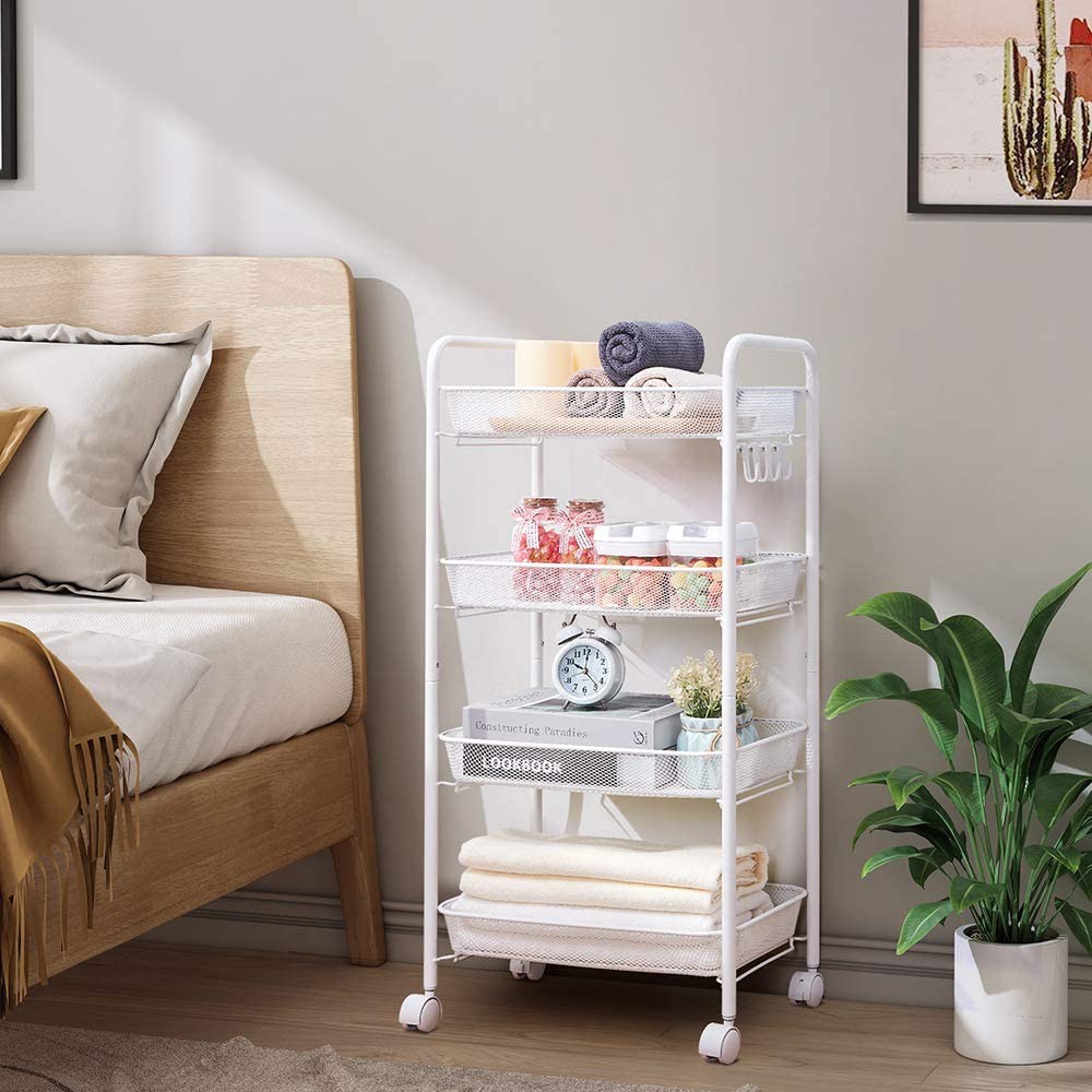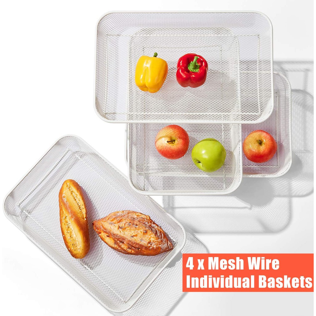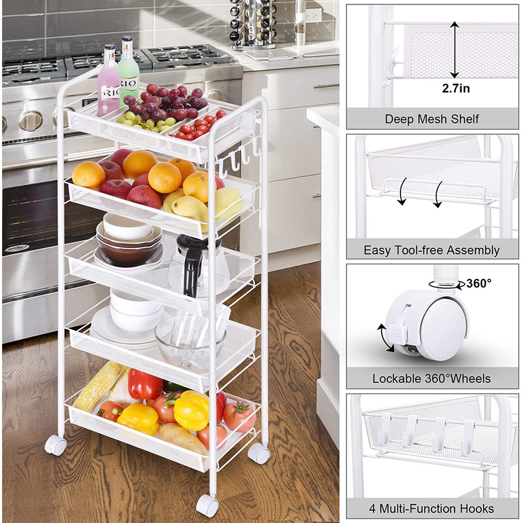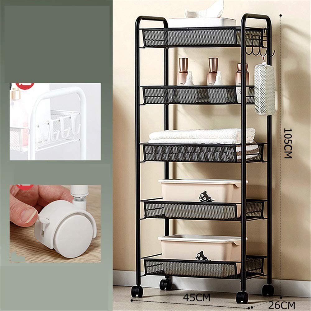 4 or 5 Tier Metal Mesh Wire Storage Trolley Cart with Steel Wire Baskets and Lockable Caster Wheels