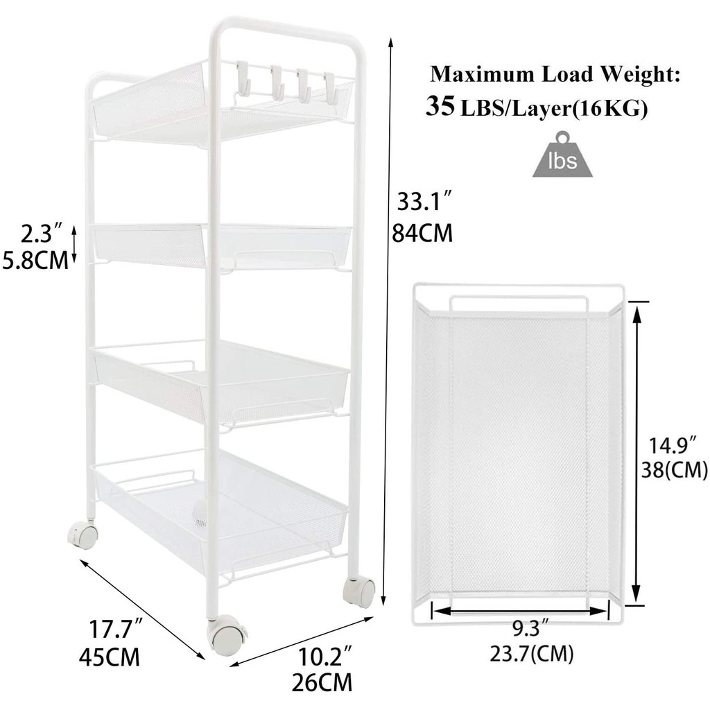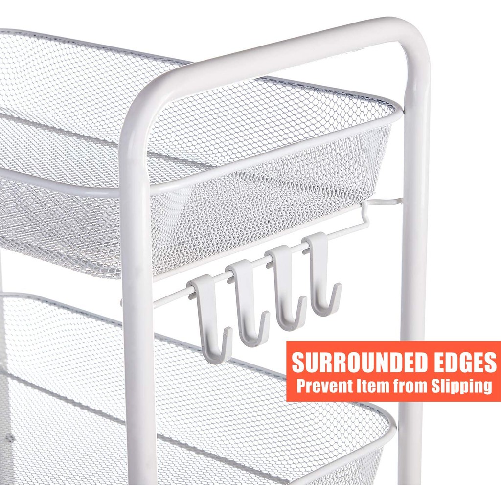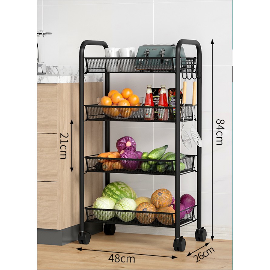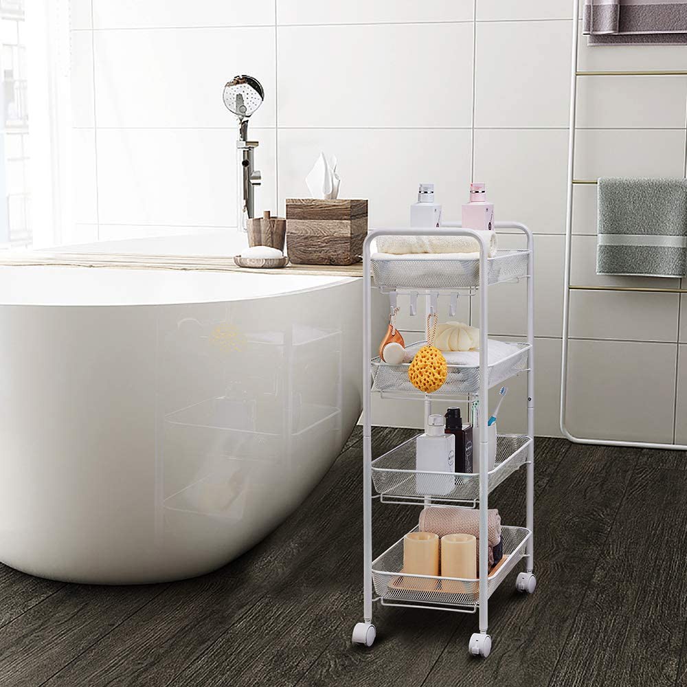 4 or 5 Tier Metal Mesh Wire Storage Trolley Cart with Steel Wire Baskets and Lockable Caster Wheels