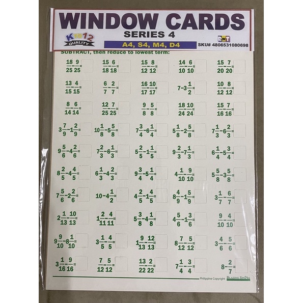 4 pcs Window Cards Set Addition, Subtraction, Multiplication , Division Series 1-4