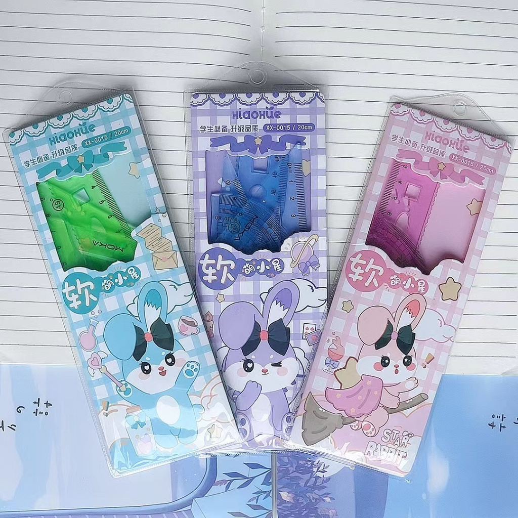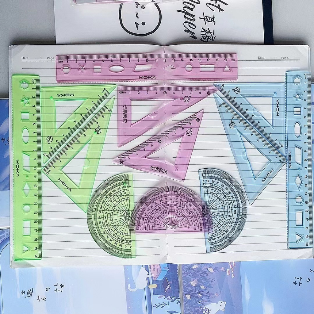 4-piece Flexible Ruler for Students Drawing Straight Ruler Triangle Set Protractor Ruler 4-piece Set
