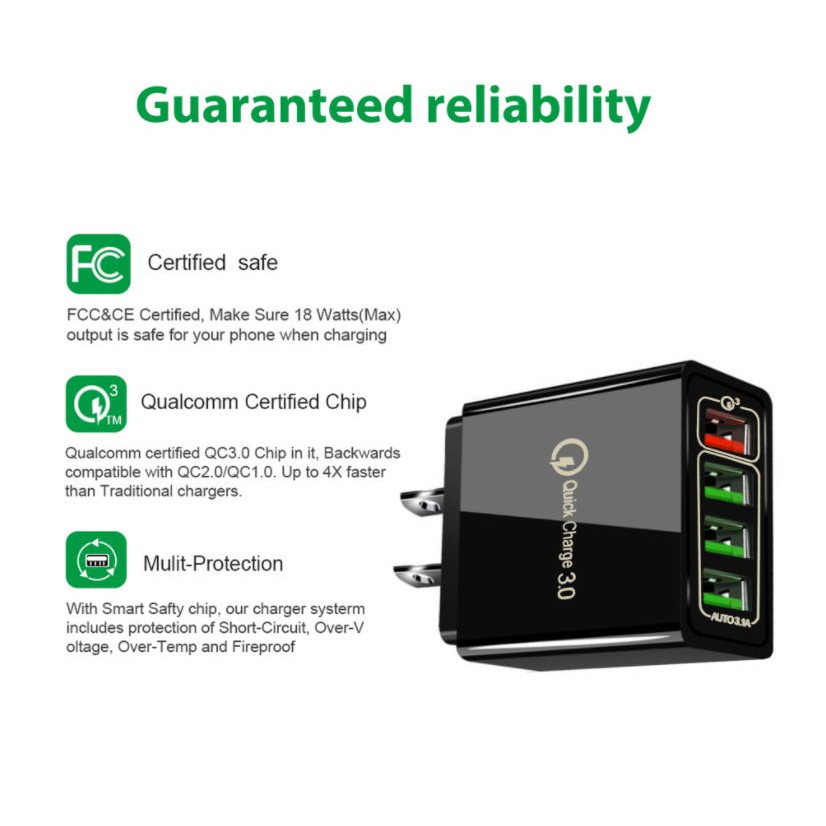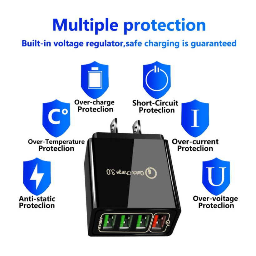 4-port USB charger head match 5V&3.1A/9V&2.0A/12V&1.5A mobile phone charger power adapter