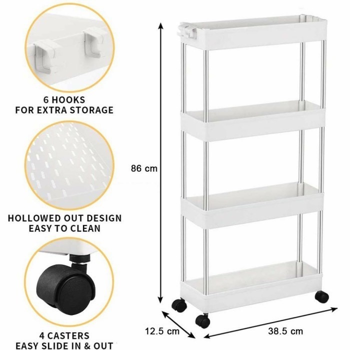 4-tier Trolley Stacking Rack Multipurpose Shelf Stacking Rack Storage Trolley