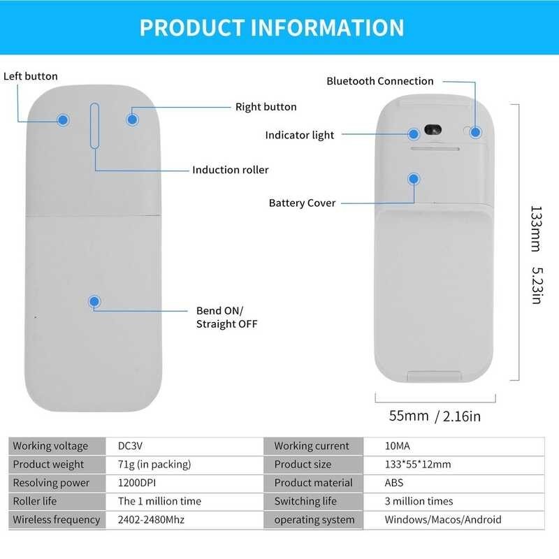 4.0 Bluetooth Folding Wireless Mouse Arc Touch Silent Ergonomic Slim Laser Mice Fr Microsoft Surfac