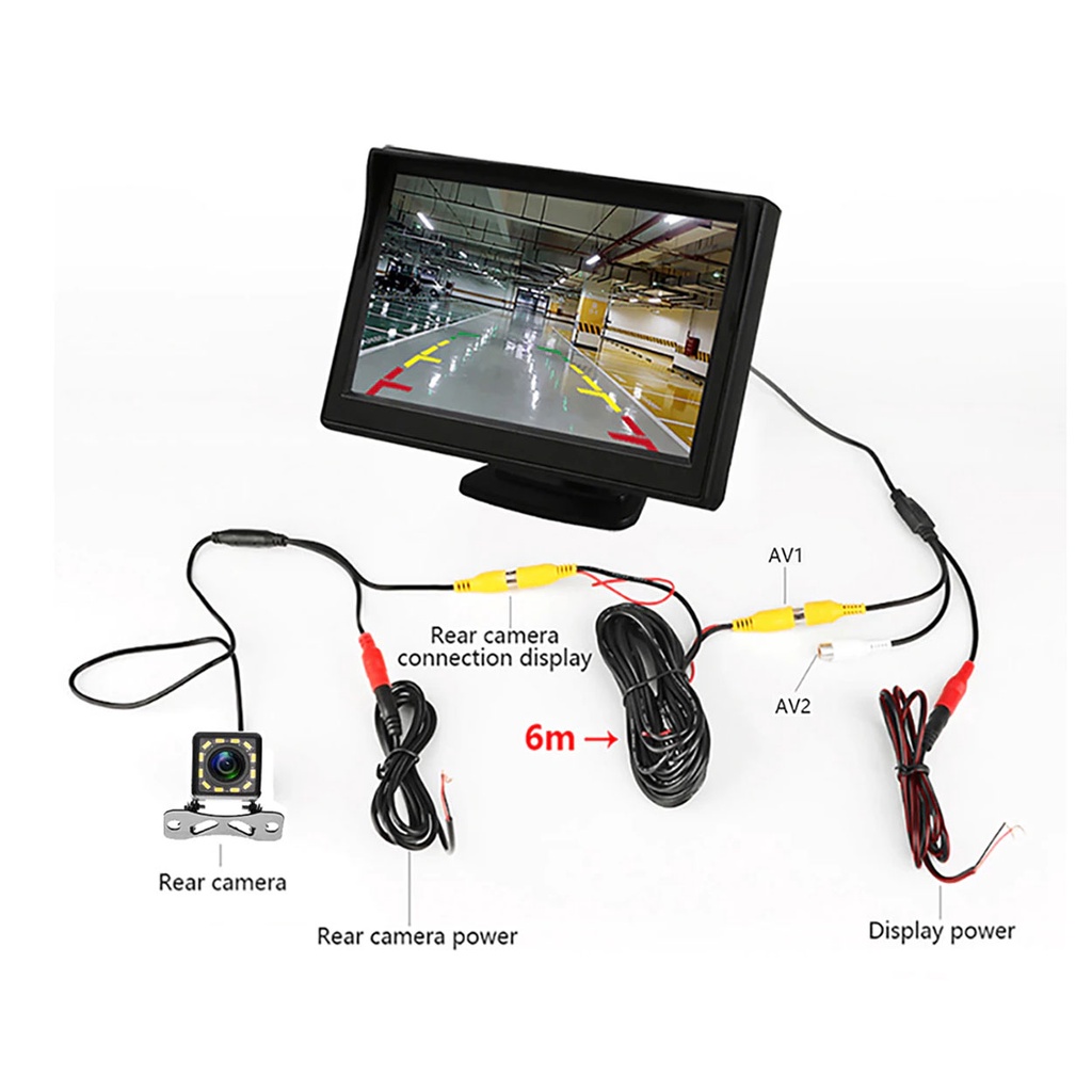 4.3/5" LED Car Monitor TFT LCD HD Digital 2 Way Video Input Colorful for Reverse Rear View Camera