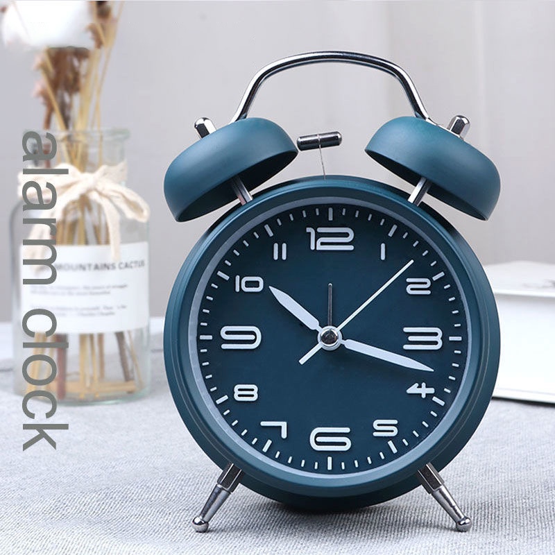 4.5" inches Large Analog Clock 3D Dial Metal Frame Silent Non-Ticking with Backlight Loud Alarm Twin Bell Alarm Clock Desk Table Clock for Home Office