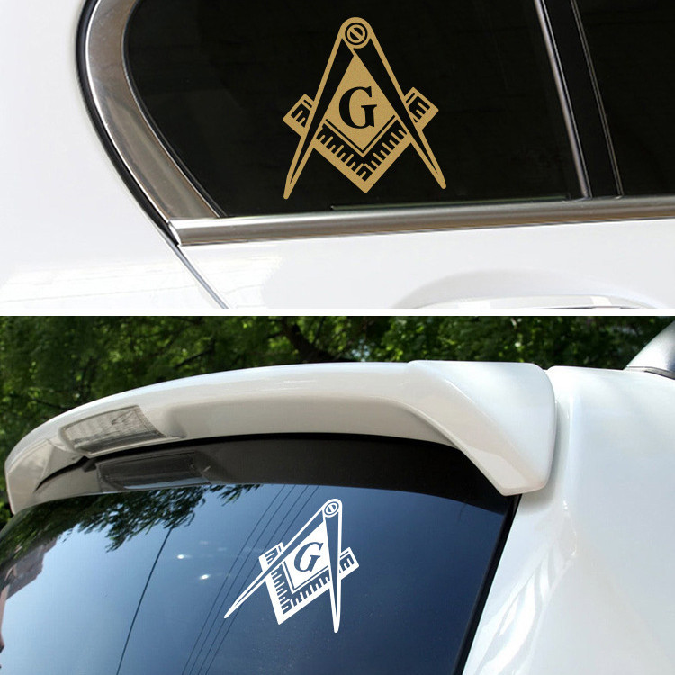 4.7 Inches Reflective Freemason Decals White Black Car Sticker For Auto Motor Waterproof Design Masonic Emblem XA482