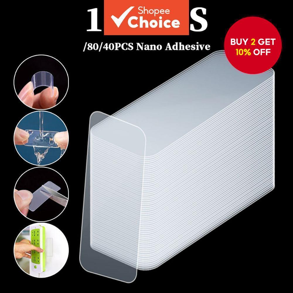 40/80/160PCS Reusable Double Sided Tape Transparent Multifunctional Nano Glue Seamless Self Adhesive Waterproof Seamless Wall Stickers Washable Tape