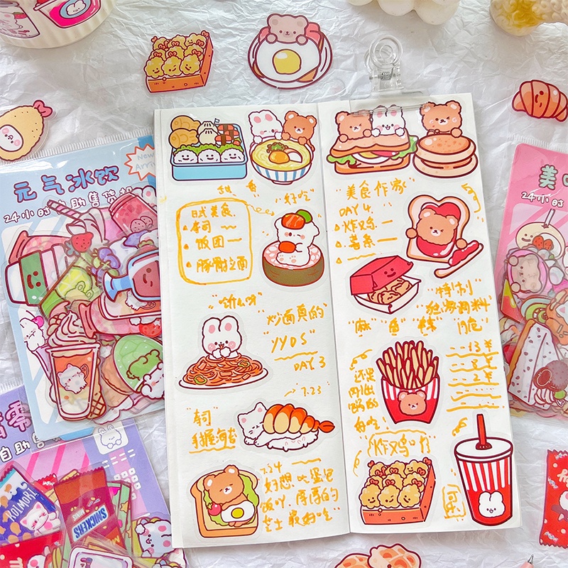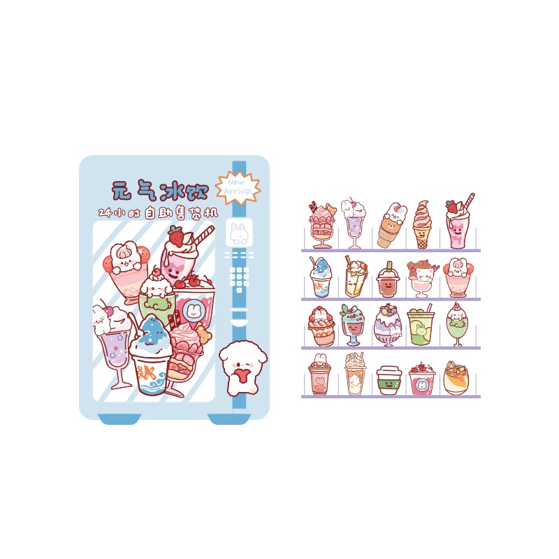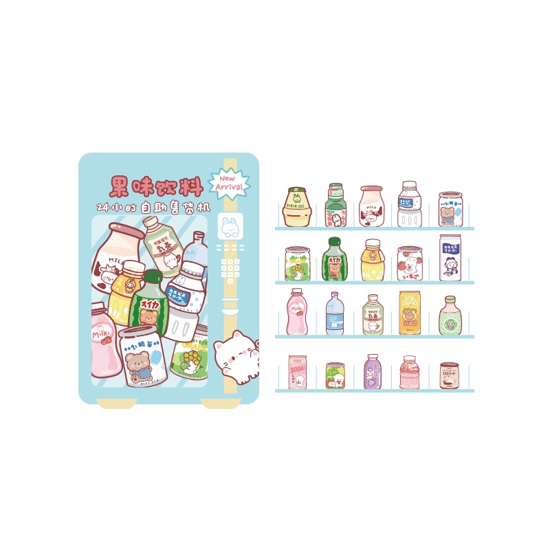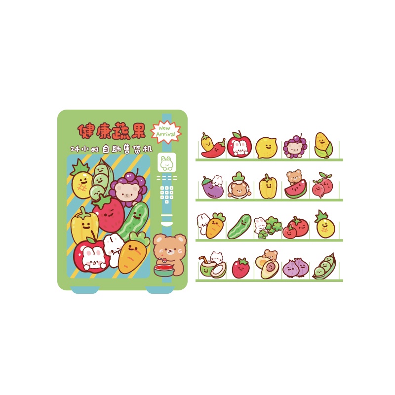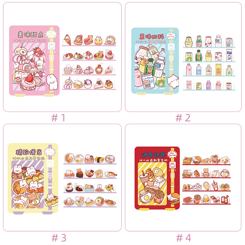 40 Pcs Cartoon Food Vending Machine Series Stickers Student Decorative DIY Stickers