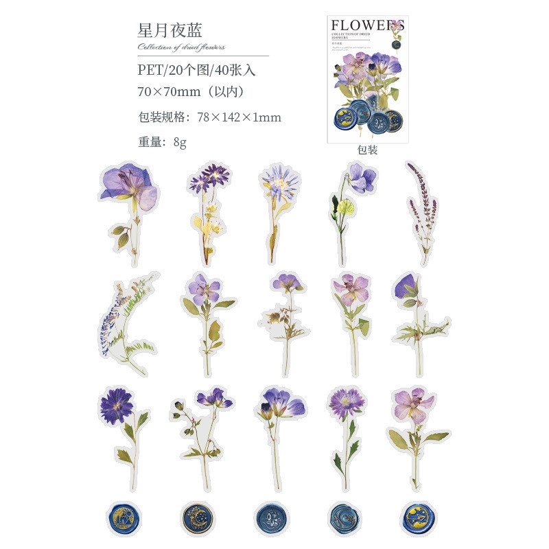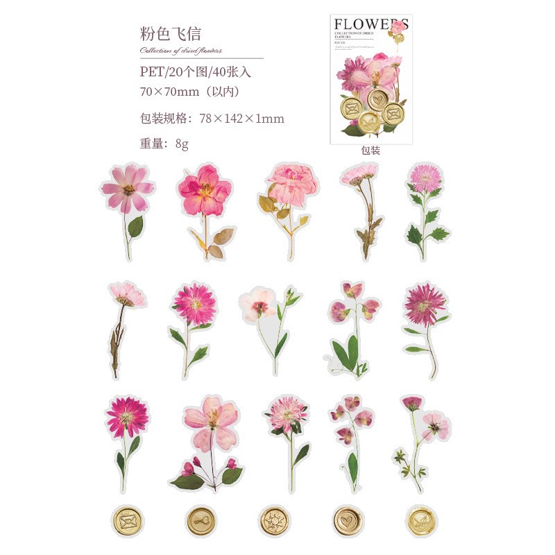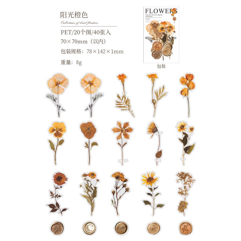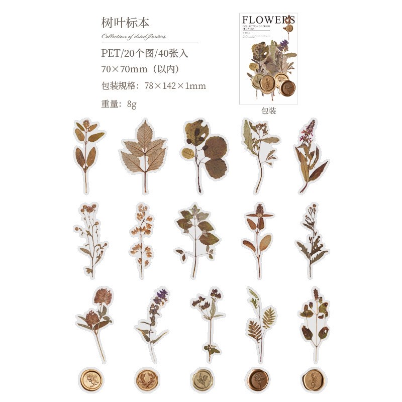 40 Pcs Vintage Scrapbooking Stickers DIY Decorative Plants Dried Pressed Flowers Retro Stickers For Diary Embellishment Supplies