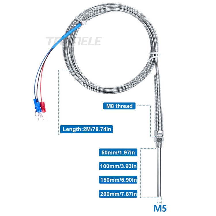 400 800 degree RTD K J PT100 50mm 150mm 100mm 200mm Oven Temperature Sensor M5 Probe Thermal Thermocouple Industrial Sensor