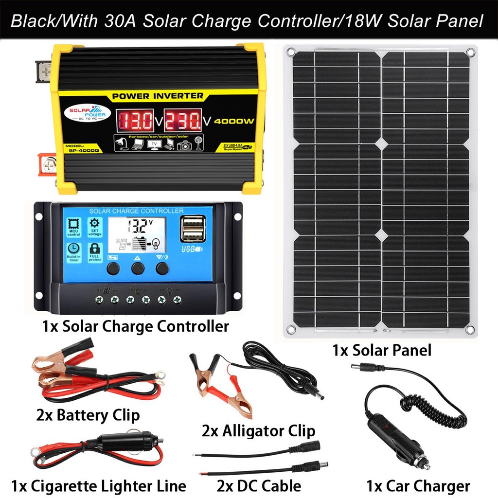 4000W Inverter Solar System 18W 18V Solar Panel Kit for Home Car Camping