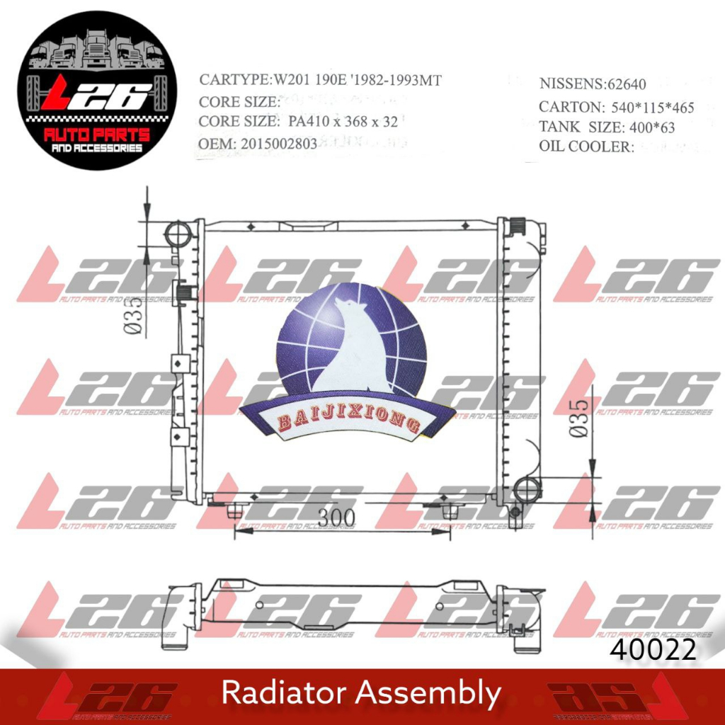 40022 Mercedes Benz W201 190E 1982-1993 Radiator Assembly M/T Manual 410X368 PA32 2 rows (Polar)