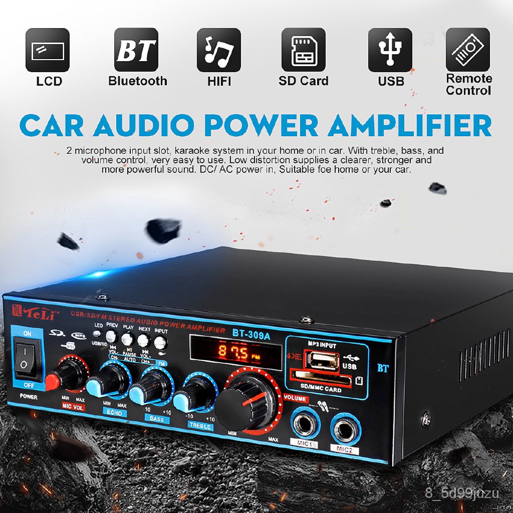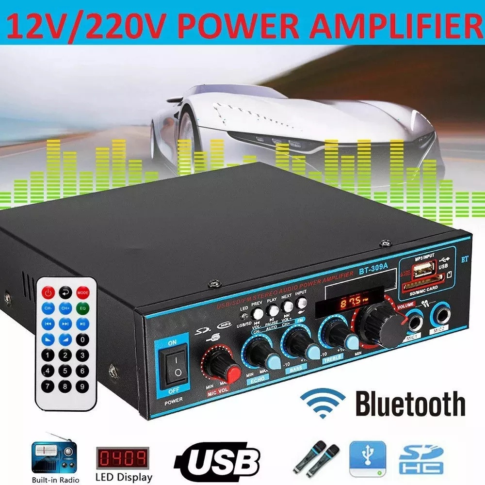 400W+400W Digital Hifi Bluetooth Stereo Audio Amplifier Fm Radio USB Car Audio Amplifier Subwoofer