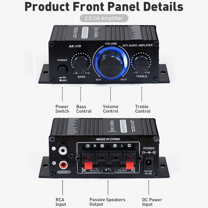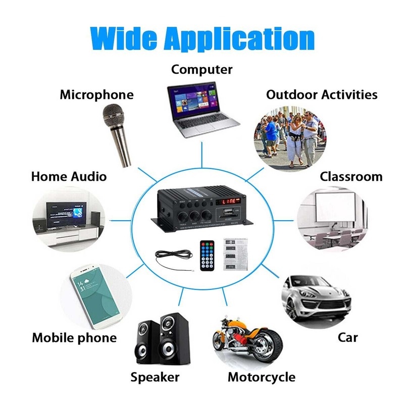 400w Mini Audio Amplifier AK370 Hifi Power Stereo Amplifier Bluetooth5.0 Subwoofer Home Car Speakers