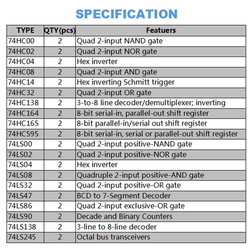 40Pcs(20Pcs 74HCxx+20Pcs 74LSxx) Series Logic IC Assortment Kit Chip