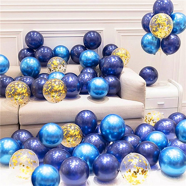 40Pcs Ink Blue Latex Balloon Set Metal Blue Gold Helium Balloons Wedding Baby Shower Birthday Decor
