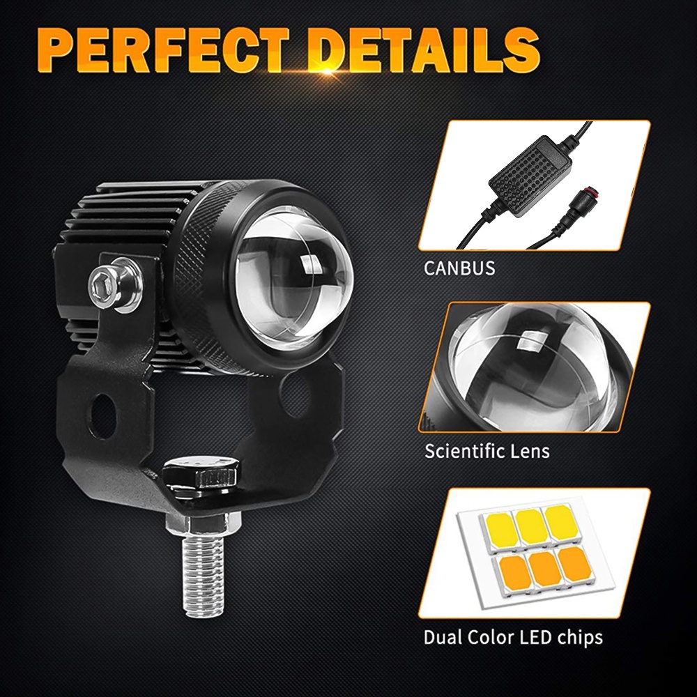 40W 1 Pair Mini Motorcycle Driving Light V5 LED Light 3 Color Hi & Low With Ballast Universal