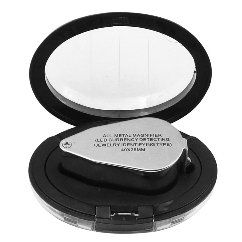 40X Mini Pocket Microscope Magnifying Glass Foldable LED UV Light Illuminated Jewelry Loupe Magnifier Currency Detecting tools