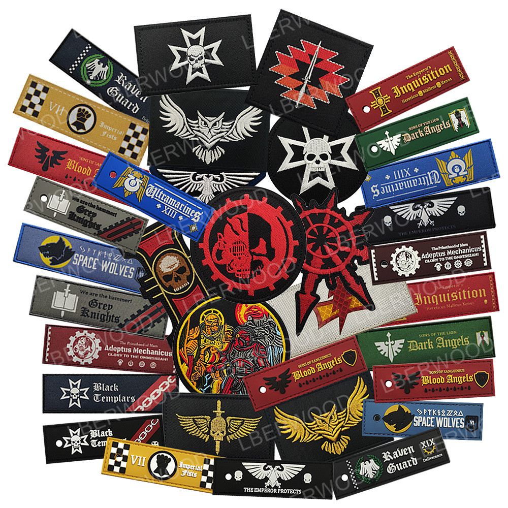 40k Warhammer PVC Rubber Patch Keychain Pendant Hammer Dark Blood Angels Warhammer Key Chain Outdoor Backpack Tactical Ring Buckle With Badge Emblem EDC Portable Multifunctional To