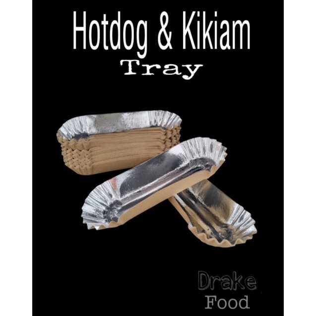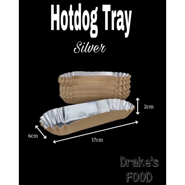 40pcs Hotdog and Kikiam tray Silver & White paper tray / white food tray by Drakes Food & Packaging