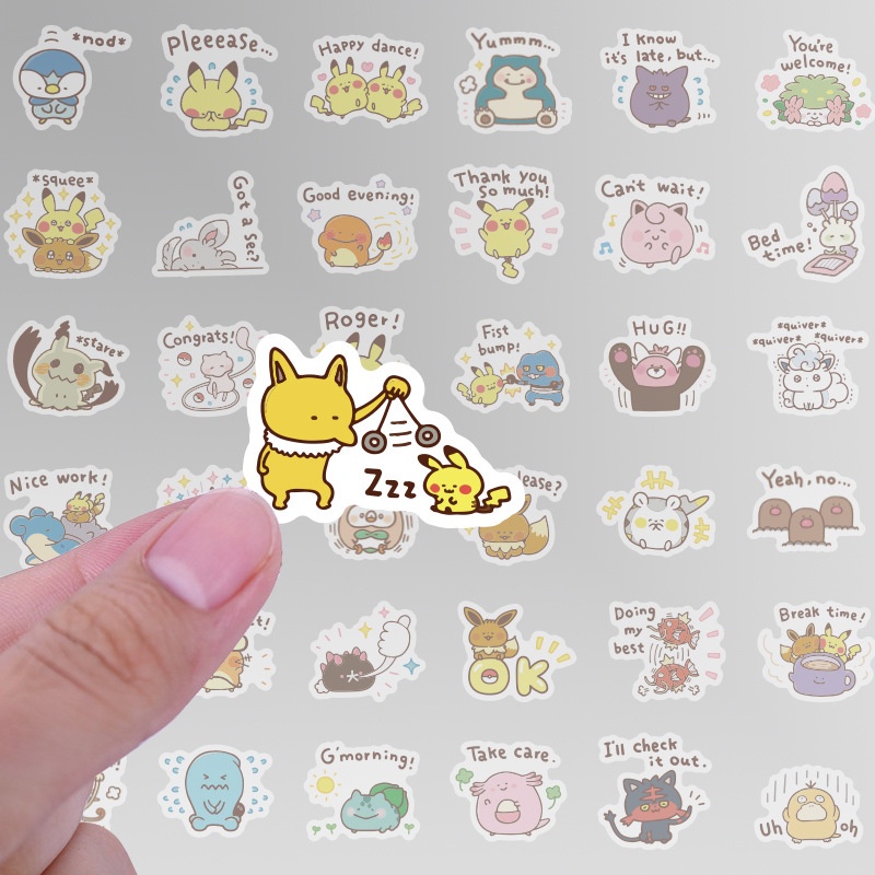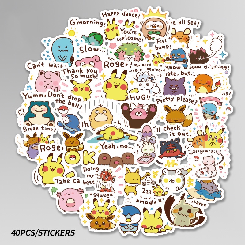40pcs Pokemon Memes Stickers Cute Waterproof Stickers Anime Mini Cartoon Stickers