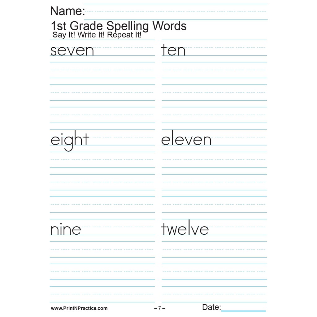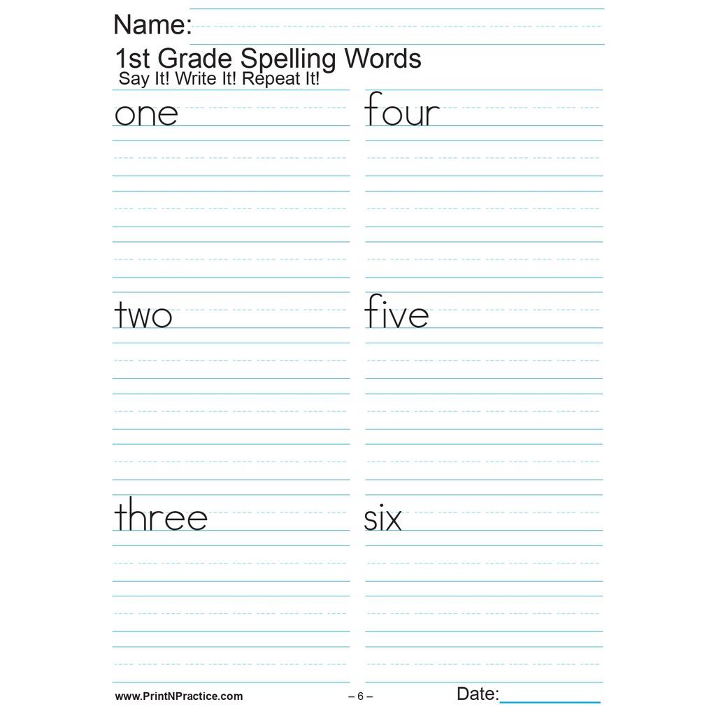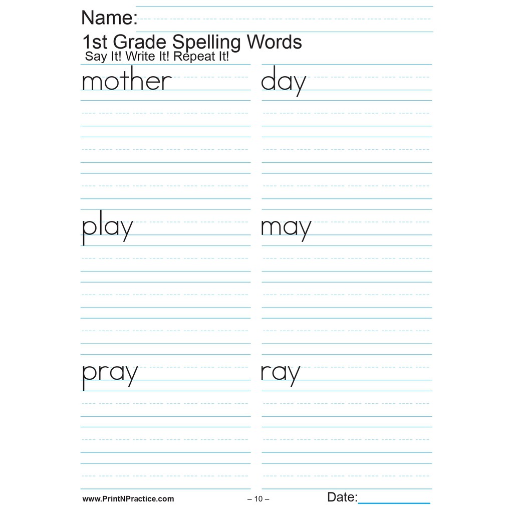 42, PAGES Grade 1 SPELLING WORKBOOK (2 pages per sheet)